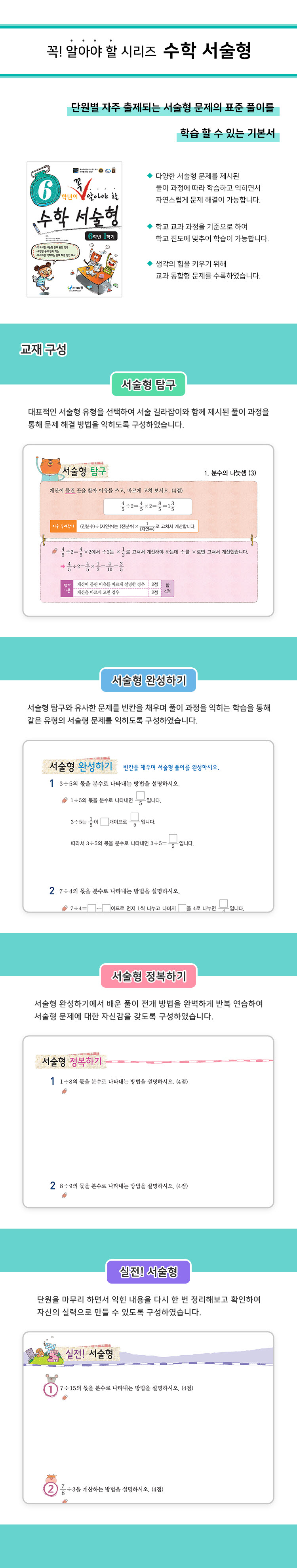 각 단원별로 자주 출제되는 서술형 문제의 표준 풀이를 학습할 수 있어 자연스럽게 문제 해결 방법을 익힐 수 있는 교재