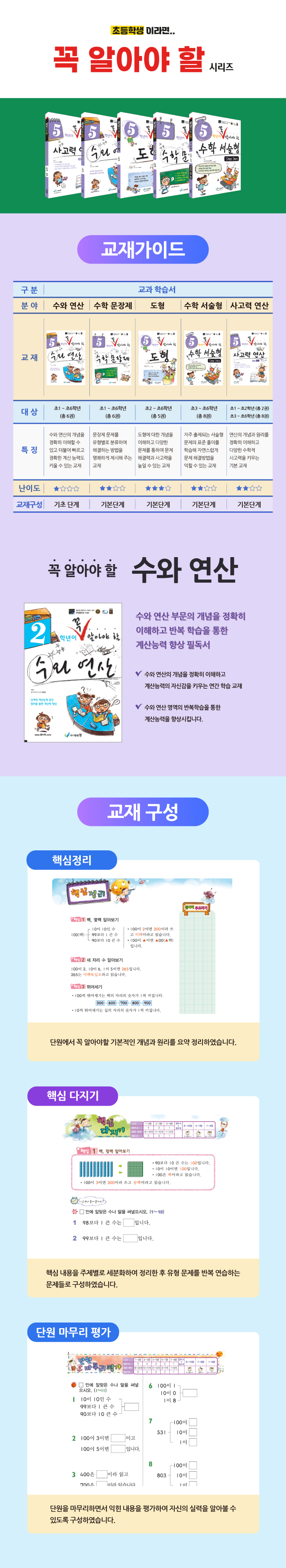 수와 연산의 개념을 정확히 이해할 수 있고 더불어 빠르고 정확한 계산 능력도 키울 수 있는 교재