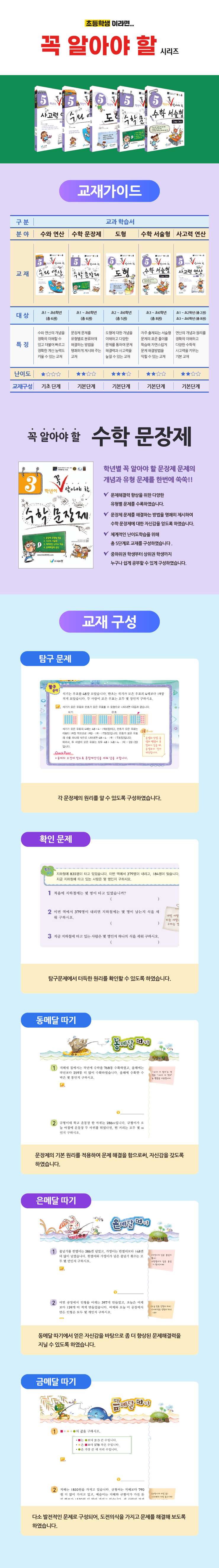 각 학년별로 나올 수 있는 문장제 문제를 유형별로 분류하여 해결하는 방법을 명쾌하게 제시해 주는 교재